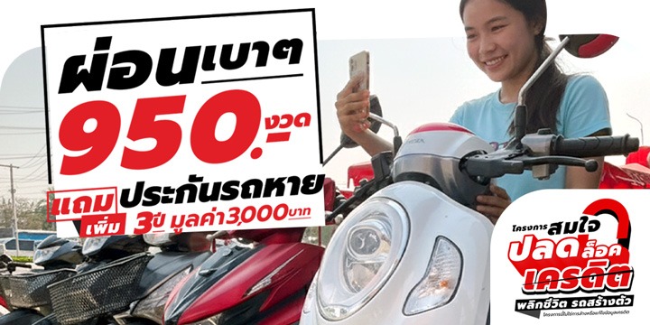 โอกาสครั้งใหม่สำหรับผู้ที่เคยมีปัญหาการออกรถ หรือถูกปฏิเสธสินเชื่อ ให้สามารถกลับมามีรถจักรยานยนต์เพื่อใช้ในการประกอบอาชีพ และสร้างชีวิตใหม่ได้อย่างมั่นคง